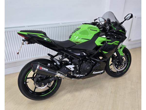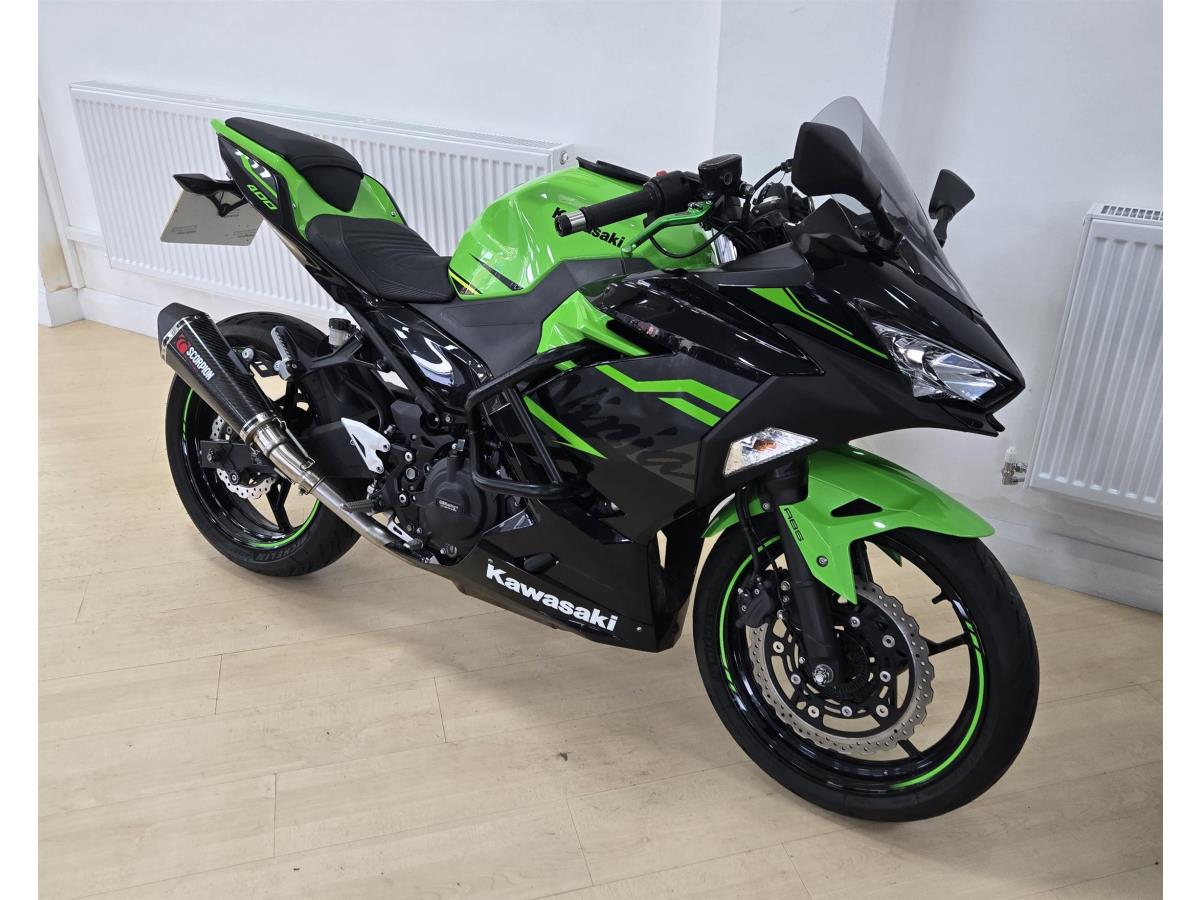 Kawasaki Ninja 400 KRT, green, very good condition, excellent service history, tail tidy, Scorpion exhaust, heated grips, engine and frame bars, engine case protectors, large windshield, Datatag, warranty