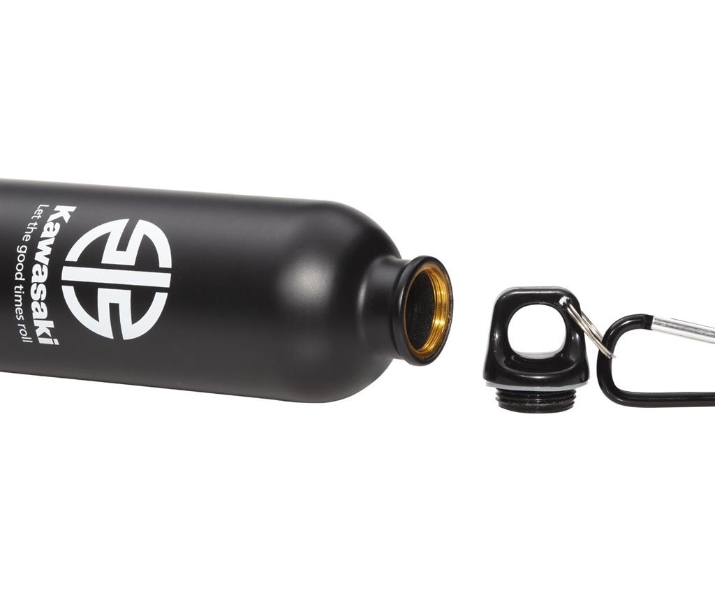 Kawasaki branded black stainless steel 500ml water bottle with screw top