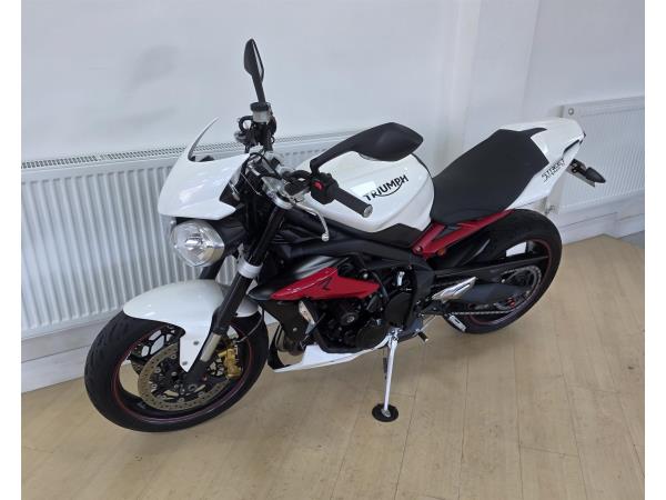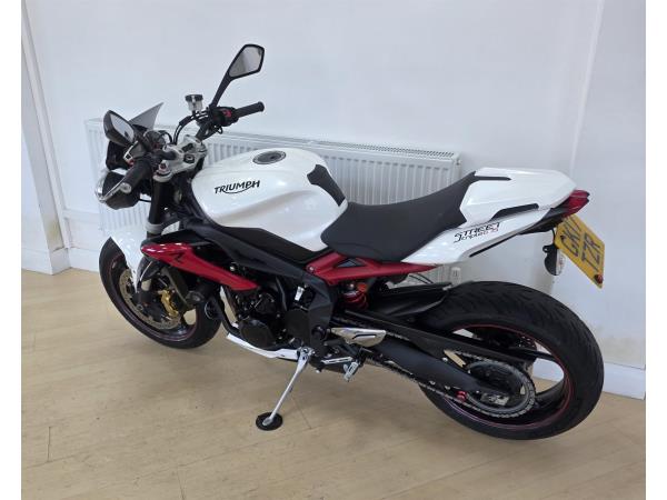Triumph Street Triple R 675, white, low mileage, very good condition, excellent service history, tail tidy, seat cowl, Arrow exhaust, R&G frame protectors, warranty