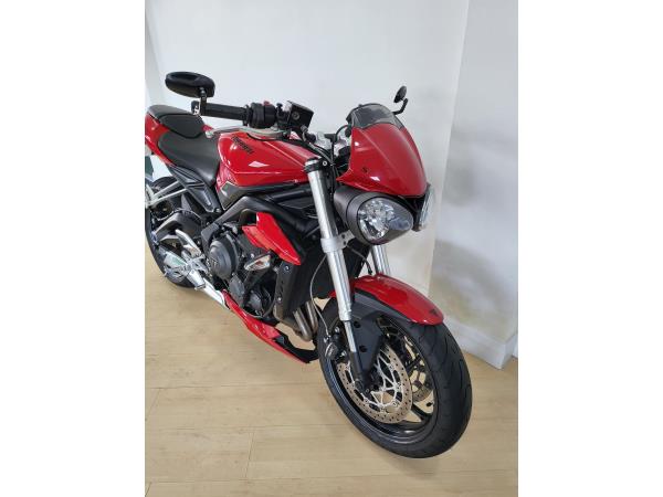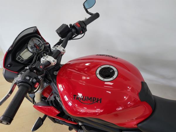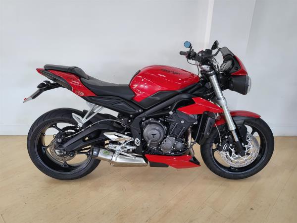 Triumph Street Triple S 765, red, VGC, Arrow exhaust, tail tidy, bar end mirrors, heated grips, excellent service history – 6 stamps in the book, FREE NATIONWIDE DELIVERY